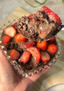 Bolo de chocolate com morangos é um amor coletivo! Agora esse clássico ganhou uma versão fácil, saudável, muita rápida e, além disso, é feito com ingredientes leves e nutritivos. Este bolo é fofinho, molhado, saboroso e fica pronto em apenas 2 minutos!